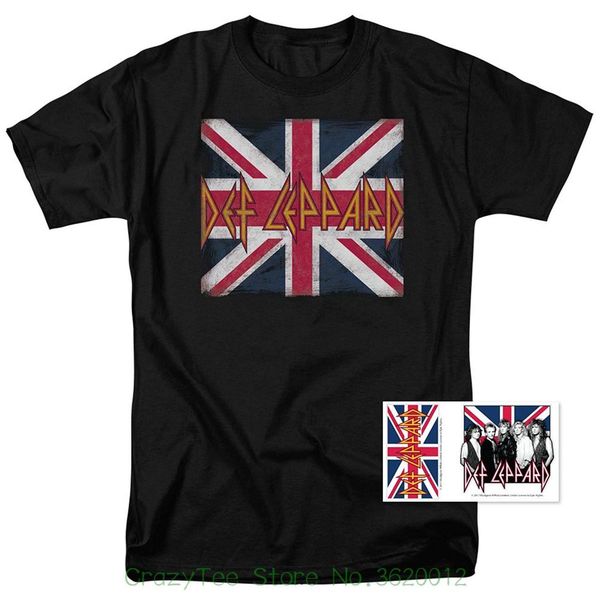 Print T Shirt Summer Style Def Leppard Logo Union Jack 80s Rock