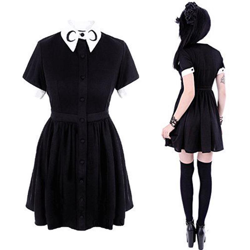 Black Girl Dress Lolita Clothing Crescent Pointed Collared Hot