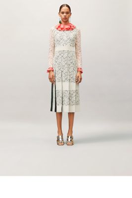 Pleated Lace Dress Women S Dresses Toryburch Eu