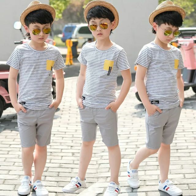 Ready Stock Korean Style Boy Clothing Set Summer Teenage Stripe