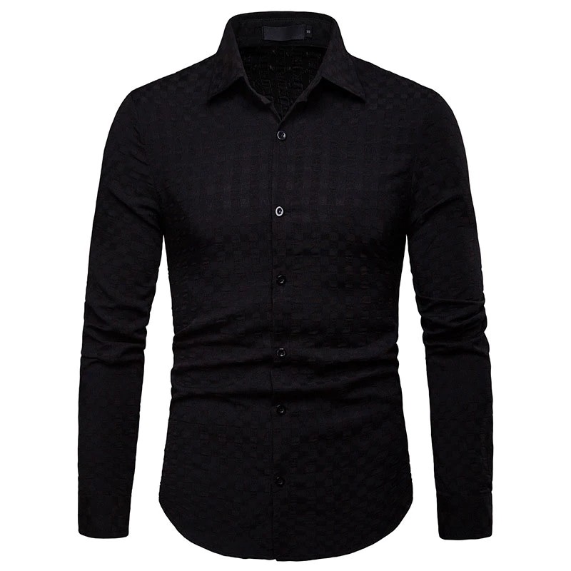 2019 Spring New Men Dress Shirt Pure Color Long Sleeve Black Man