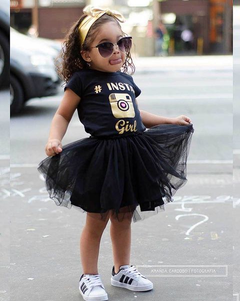 2019 Black Kids Designer Clothes Girls Dresses Summer 2019 Short