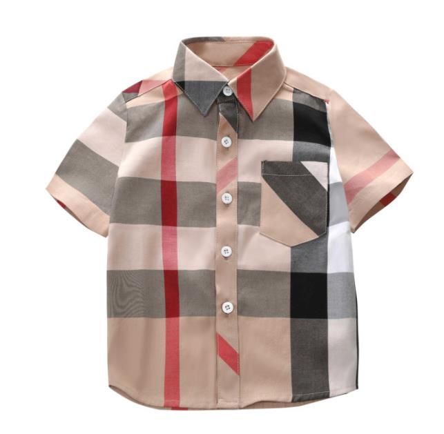 Boys Shirt 2020 Summer Classic Plaid England Styles Lapel Collar