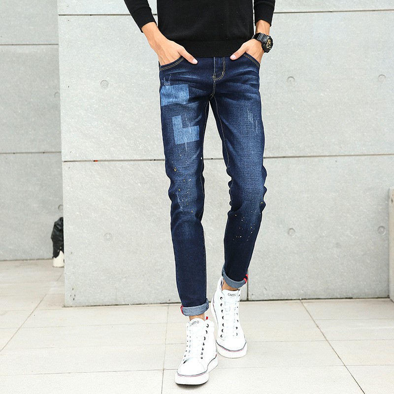 2018 Spring New Mens Korean Style Fashion Washed Denim Applique