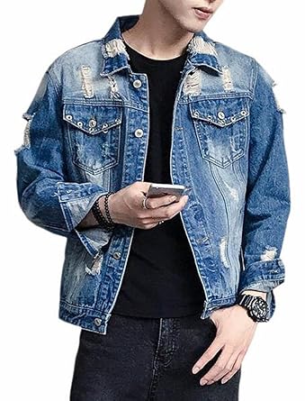 Xswsy Xg Men S Rugged Wear Ripped Distressed Stylish Denim Coat