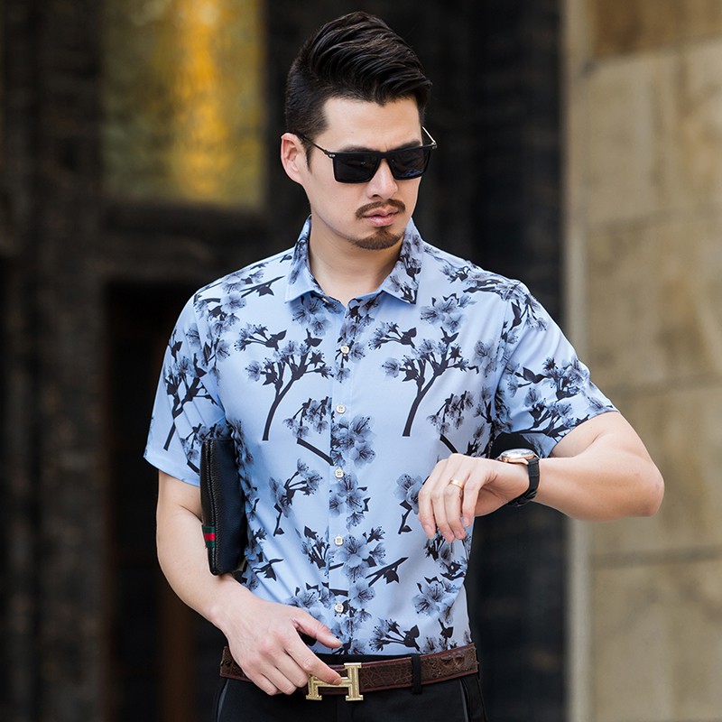 Summer Men Clothing Fashion Pattern Hawaiian Shirt Short Sleeve
