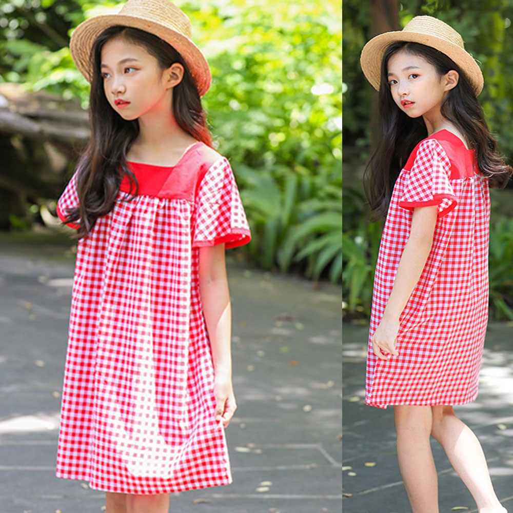 New 2019 Spring Teenager Girls Dress Fashion Plaid Children Dress