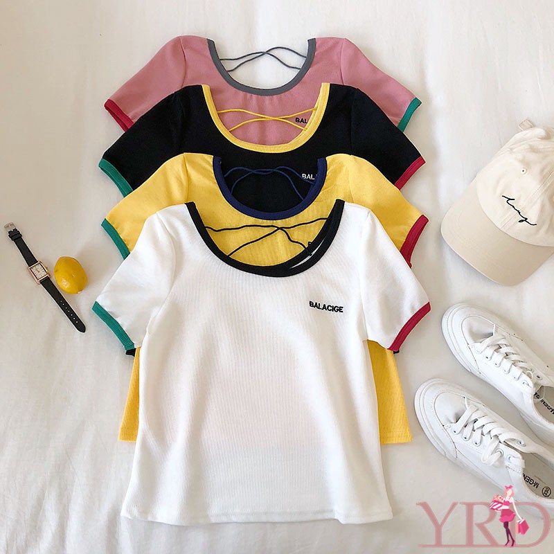 Fashion Women Casual All Match Letter Printed Slim Fit T Shirts